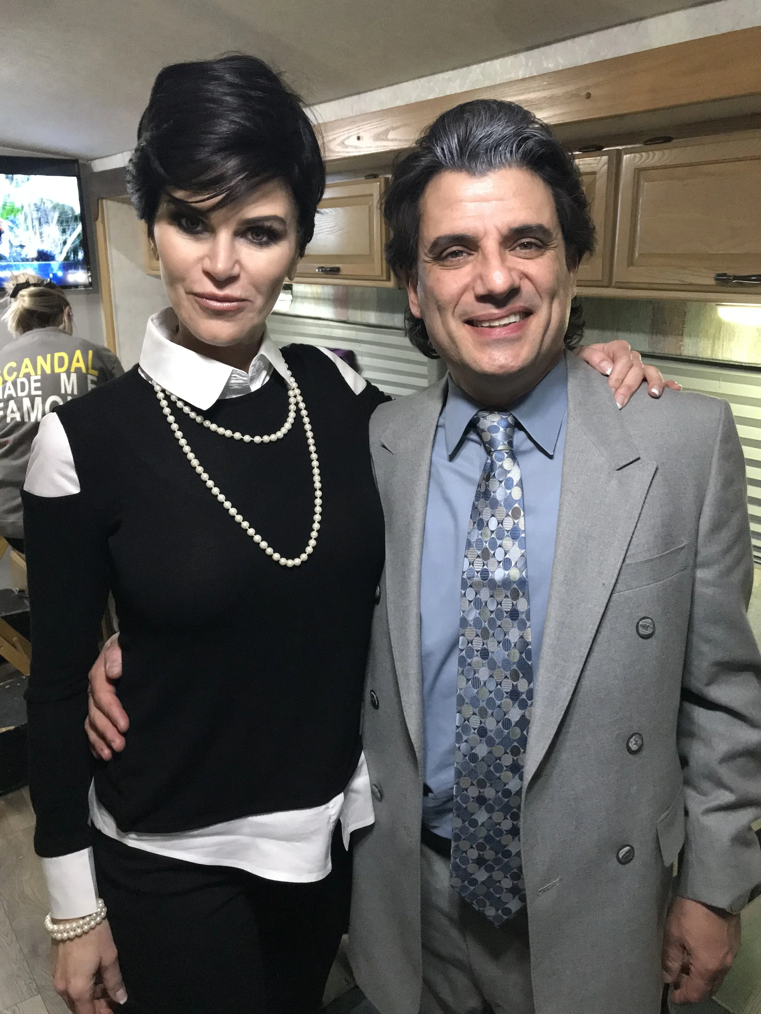 On the set playing Kris Jenner with my x-husband Robert Kardashian, played by Joe Demonico.